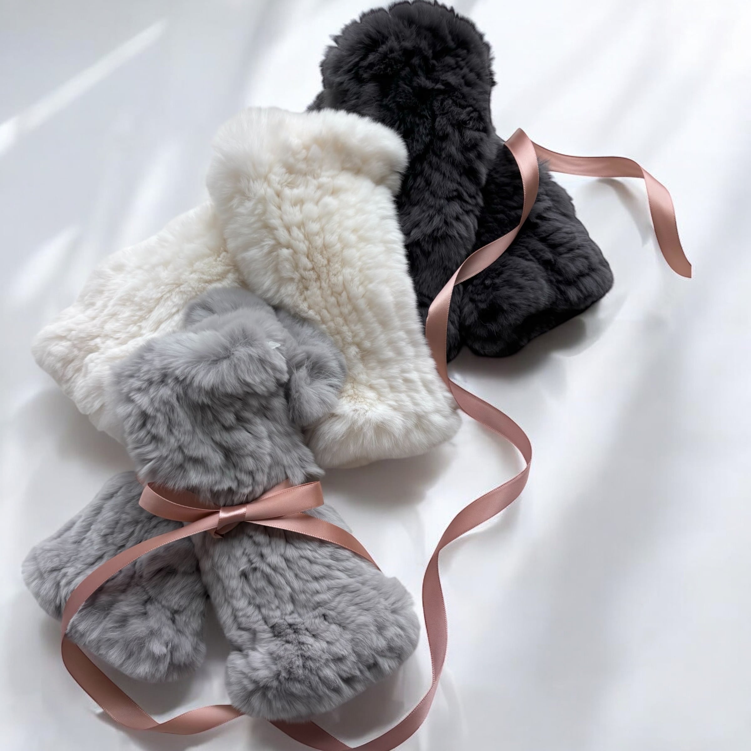 大人気のフワフワな品の良い大人なレッキスファーグローブ。 伸びるフリーサイズで、圧迫感がなく、軽い着用感です。 表面・裏面共にレッキスファーを使用し、とても暖かく着用いただけます。 内側も毛が密集し大変暖かくお使い頂けます。 ゴム素材のネットにレッキス毛皮を編み込んで作っていますので、触り心地も多変柔らく、癒しのグローブです。 1カ所親指を通す穴が開いていますので、親指を入れてグローブ、 そのまま手首に付けてカフス、として2WAYでお楽しみ頂けます。 フィンガーレスだけど、手首をすっぽりカバーしてくれるのでとっても暖か。 着用したままスマホも利用できるのが使い勝手の良いポイント。 親指の穴を通さずに、アームウォーマーとしても◎ 着脱せずにシーンに合わせて使い分けできます。 冬の通勤やお出かけは勿論、ギフトにもオススメです。 ※こちらのアイテムは無料ラッピングでお届け可能でございます。(手渡し用紙袋付き。リボンや紙袋のカラーはお選びいただけませんのでご了承下さいませ。) ・ラッピングご希望の方は配送方法にて、 【宅急便コンパクト又は宅急便】 をご選択くださいませ。 他商品をご一緒にご購入の場合は、宅急便扱いとなります。その際はラッピングしてのご配送となります事をご了承下さいませ。 ・【クロネコゆうパケット】 をご選択された方は、ラッピング無しでのお届けとなります。 『 レッキスファー 』とは・・・ レッキスはラビット種の中でも最高級種。 ラビットに比べるとその毛には光沢がありシルキーです。 毛皮製品にしたとき切れ毛も少なく綿毛と刺毛の高さが同じ事もレッキスの特徴です。 ※レッキスファーを使用している特性上、着用初期は毛が付きやすくなっております。 着用していくうちに落ち着いて参りますが、 ・着用初期は黒などの濃色カラーのスタイリングは避けて頂く、 ・着用前にブラシでブラッシングをして頂く、 ・風通しの良い場所で付着している毛をはらって頂く、 などして頂く事で毛付きの程度を抑えていただけます。 ※水に濡れた際は乾いた布で水分をふき取り、直射日光をさけ、自然乾燥させて下さい。 ※天然素材を使用している為、個体により多少の誤差がございます。ご了承下さいませ。 サイズ F 全長 約20㎝ 幅 約10㎝ 外周 約21㎝ 重さ(片方) 約32g 素材 毛皮 レッキス 中糸 ポリエステル100%
