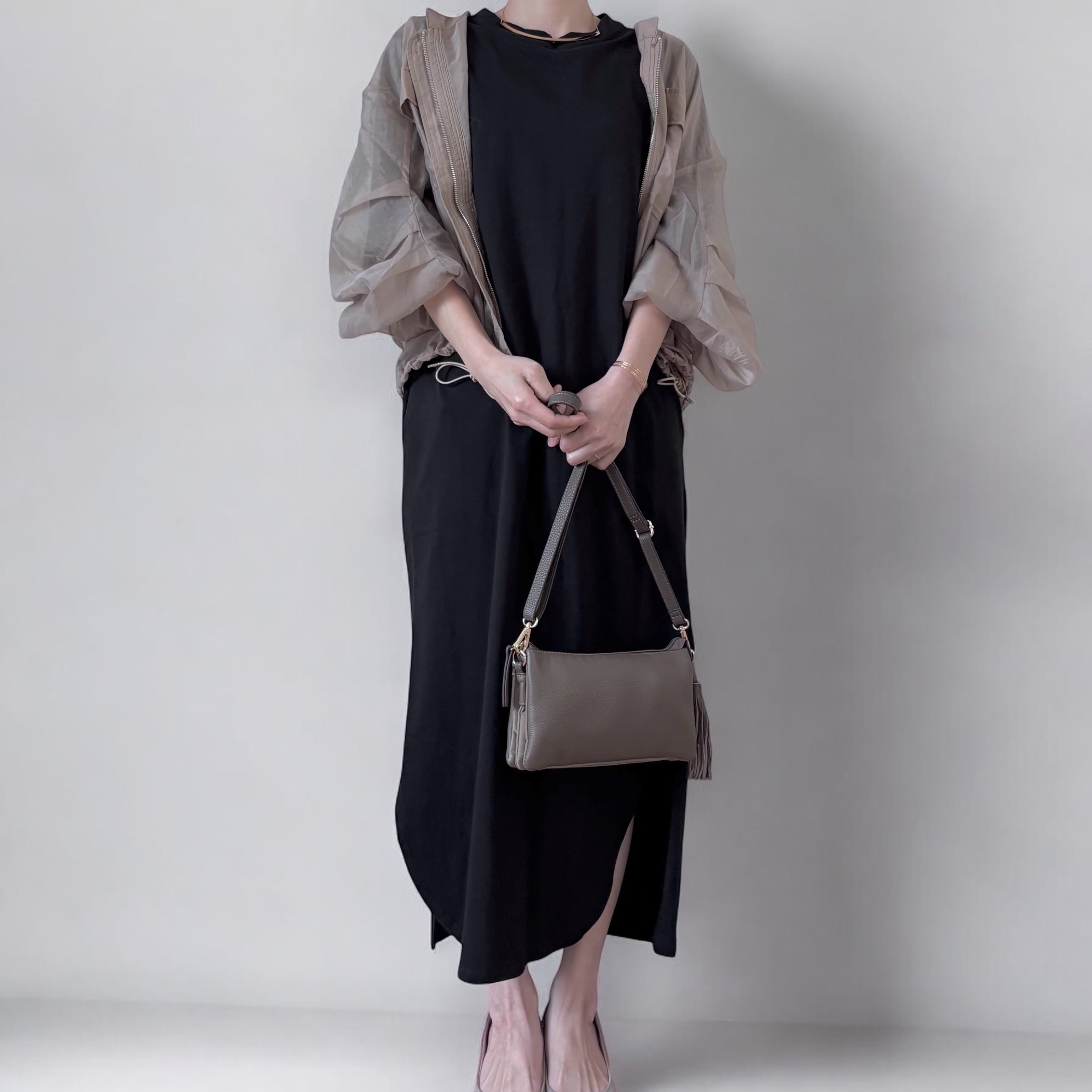 さり気ないパイピングもアクセントになり、ふわっとエアリー感のある生地がこれからの季節にしっかりと活躍してくれるアイテムです。
